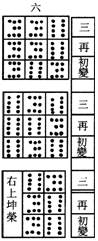 右三變皆偶,為老陰,坤之策者八。歸劫得二十四策,過碟亦得二十四策,以四約之,歸功得六,六今四過搽亦得六六個四六者,陰之極,變而為陽。《易》以變為占,凡陰爻之變者,通謂之六。