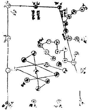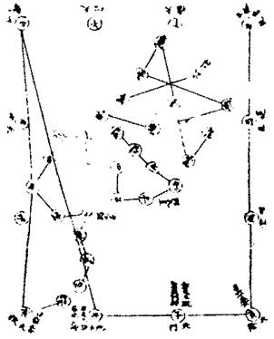 眉間左右入三分曰金臺玉闕,左眉曰黃闕神師,右眉曰紫戶將軍,入一寸曰明堂,入三寸曰泥丸太一君如帝王狀,入二寸曰洞房太清宮,次四寸曰太極宮見黃老君,入三寸玄丹宮,太一丹田宮,上一赤子,五寸曰太上宮見玉晨君。次上三寸曰玉清宮。見帝一玉帝居之,面天門。心九拜,一一具奏云云。默朝畢,出堂至洞案前,心拜存念,遐想在地,一意宗朝謁於太清之下,先班開外八門,得時入靖,推太陽月將在宮,以將加正時起剋賊,刑衝比害,日辰陰陽,四位神用,為已造筭惡中取見。今受報未下,乃上天旨命,役於天星,用於天將,隨其所主,集詣威詞,盡情參妙言之,以得昭報。如泄之,則三官考罰,三掠三原。