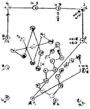 凡為國家生靈大事,須謁三天門下,省內朝畢。存五方大靈洞陽五色,在五方結為五方光暈。三天太一紫雲,懸蔭一身。其光下入泥丸,左九轉,心中右九轉,混合帝宅,上下三次。即存心出赤O,上昇于天,如長虹之狀。自己如常法存儀,入赤O,運轉上行數百里,見日月黃道橫截,乃星界。次過西北行,又千里,遙見紫雲隱隱,乃三天門。先詣青龍宮,啟太一元生帝君。次南詣鳳凰闕閣下,白道德眾尊。次西過少昊金樓闕下,啟正一天師三師君。次回還中宮,便俓詣玄冥宮中北極太真門下,上白太一大帝君。次升金闕崇樓寶殿,朝拜上帝。至玉陛下,章奏付玉案上,傳與左右靈妃,太玄陽青腰承翼白素玉女,朱雀童子,即使達御,伏俟玄恩,到此非存想矣,有心合於無為可得。自非陽神地仙,役御靈妃六甲,不得見帝。苟內朝太一命神三尊,入道化元,不在霄漢,得之於自已,可以坐致十天矣。回存如初。
