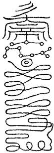 右書此符時,念咒掐玉皇訣,取五方O各一口。凡欲召雨雪用,朱書於鐵板上,長五寸,置於有龍處。或欲擊物,則置其上,七日自至此。未行靈書散符時,須依此。如散符既熟,則又可自然而知。凡發符即念咒,取本院符使O。