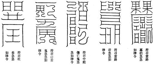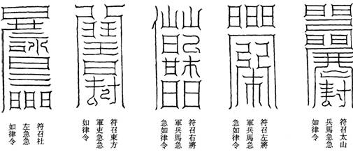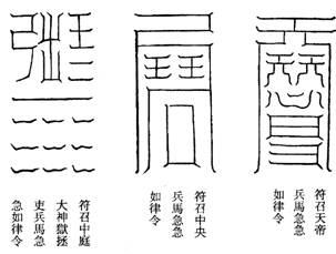 夫欲召萬物神符,丹書桃刺長一尺六寸,封以天帝使者印約,以左索召鬼,其神立至,佩帶符百鬼皆畏,人知大鬼姓名,則悉不為害也,凡諸州神名,主其州中所部縣鄉里域,社君不得令邪精鬼魅血食,大小山神其有不伏者案法召之,鬼應響立至,急急依事召問元由也。