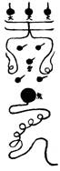 右符用黃紙墨書,合口閉炁書成,符內加一一煞一雷字于黑圈內,七轉出筆。能興雷電雲雨,可治山魈五通,木下妖怪,石洞精魅,專委錢使者統兵行事。用金錢雲馬同符焚化發遣,或燒灰調服。此符上一截可以佩帶。